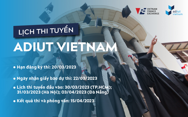 Lịch thi tuyển và phỏng vấn ADIUT Vietnam năm 2023 sẽ được tổ chức vào tháng 03-04 như thường niên. Thông tin chi tiết được cập nhật dưới đây: