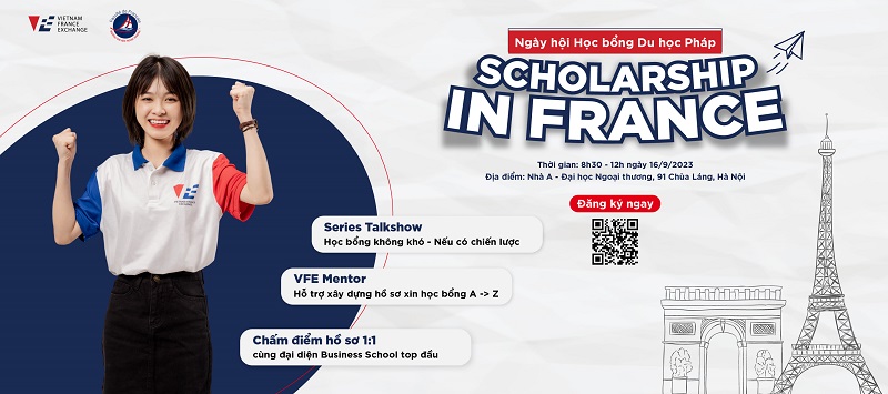 Các chương trình học bổng không chỉ là nguồn hỗ trợ về mặt tài chính, đó còn là minh chứng cho những nỗ lực của từng cá nhân và trở thành nguồn động viên to lớn. Hiểu được những giá trị ấy, VFE đã phối hợp với Khoa Pháp – Đại học Ngoại Thương để mang đến một chương trình vô cùng ý nghĩa và thiết thực mang tên “Ngày hội học bổng Du học Pháp – Scholarship in France (SIF)”. Đây là sự kiện đặc biệt, dành riêng cho các bạn học sinh, sinh viên đang ấp ủ dự định du học, nhất là du học Pháp.