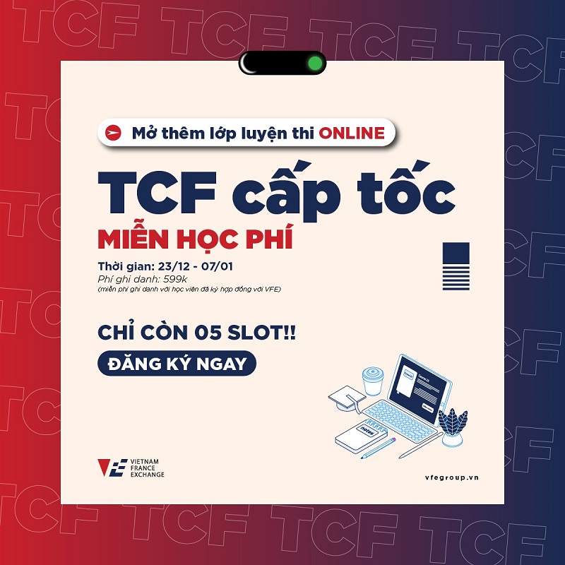 [CẬP NHÂT] MỞ ĐƠN ĐĂNG KÝ Lớp luyện thi TCF cấp tốc cho tháng 01-2024 tại VFE