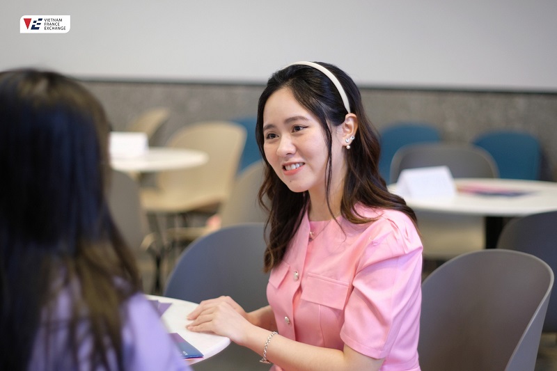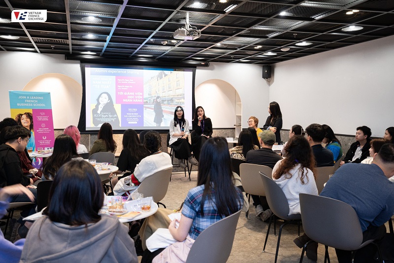 Bên cạnh đó, bữa tiệc teabreak mang đậm phong cách Pháp cũng là dịp để giao lưu, gặp gỡ giữa các bạn học sinh, các tân sinh viên NEOMA kỳ tháng 9/2024 với các tiền bối – 2 nữ diễn giả xinh đẹp Ths. Tô Nguyễn Ngọc Hà & Ths. Nguyễn Ngọc Mai. Câu chuyện từ hai nàng cựu du học sinh NEOMA Rouen đã giúp khán giả phần nào hiểu hơn về nước Pháp, về những câu chuyện “người thật – việc thật”, những trải nghiệm có 1-0-2 khi học tập tại Pháp. VFE chân thành cảm ơn các quý phụ huynh, học sinh và các diễn giả đã cùng đồng hành và làm nên thành công của sự kiện NEOMOMENTS Hanoi!
